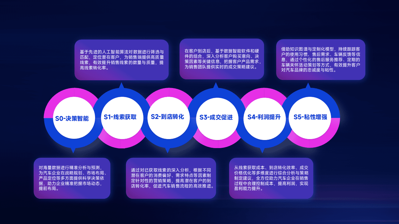 通过拓宽潜在客户来源、、优化线索分配并提高到店转化率,,,,以增强销售效率。。。同时,,,利用线索数据不断优化分析模型,,,有效提升转化率,,,,扩大营销影响力。。